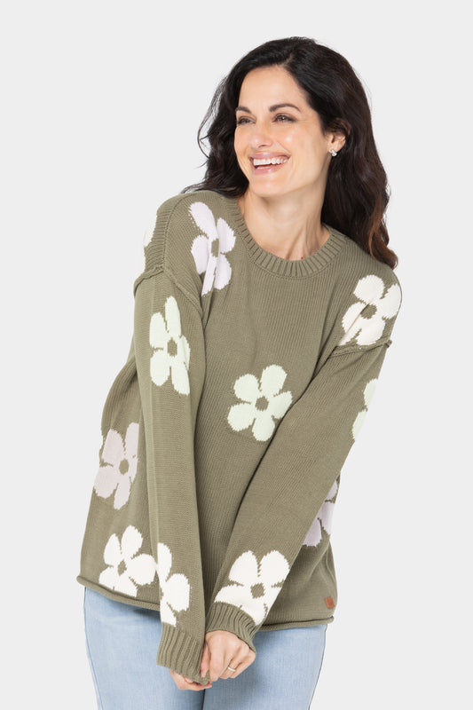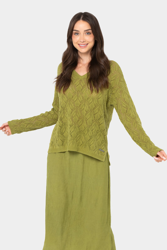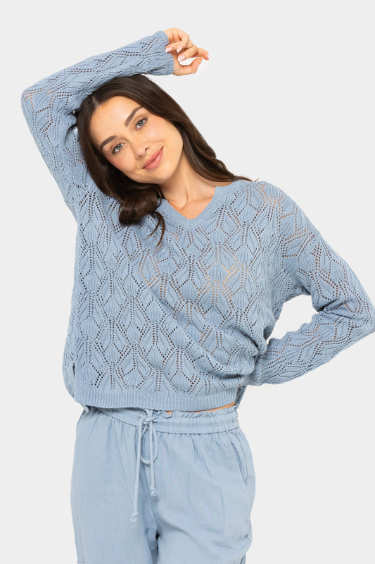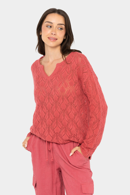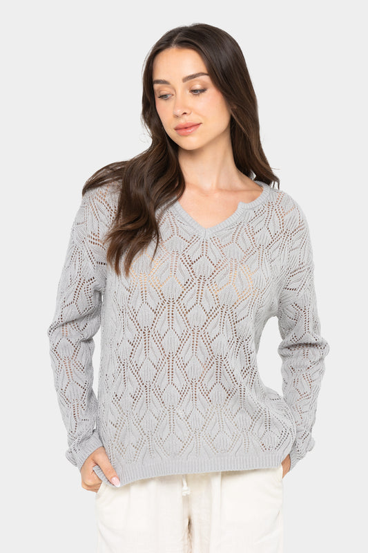 Novelty Stitch Crewneck Long-Sleeve Pullover