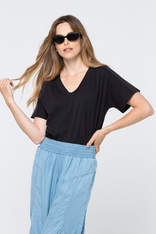 Sueded Knit Mixed Media Dolman Tee