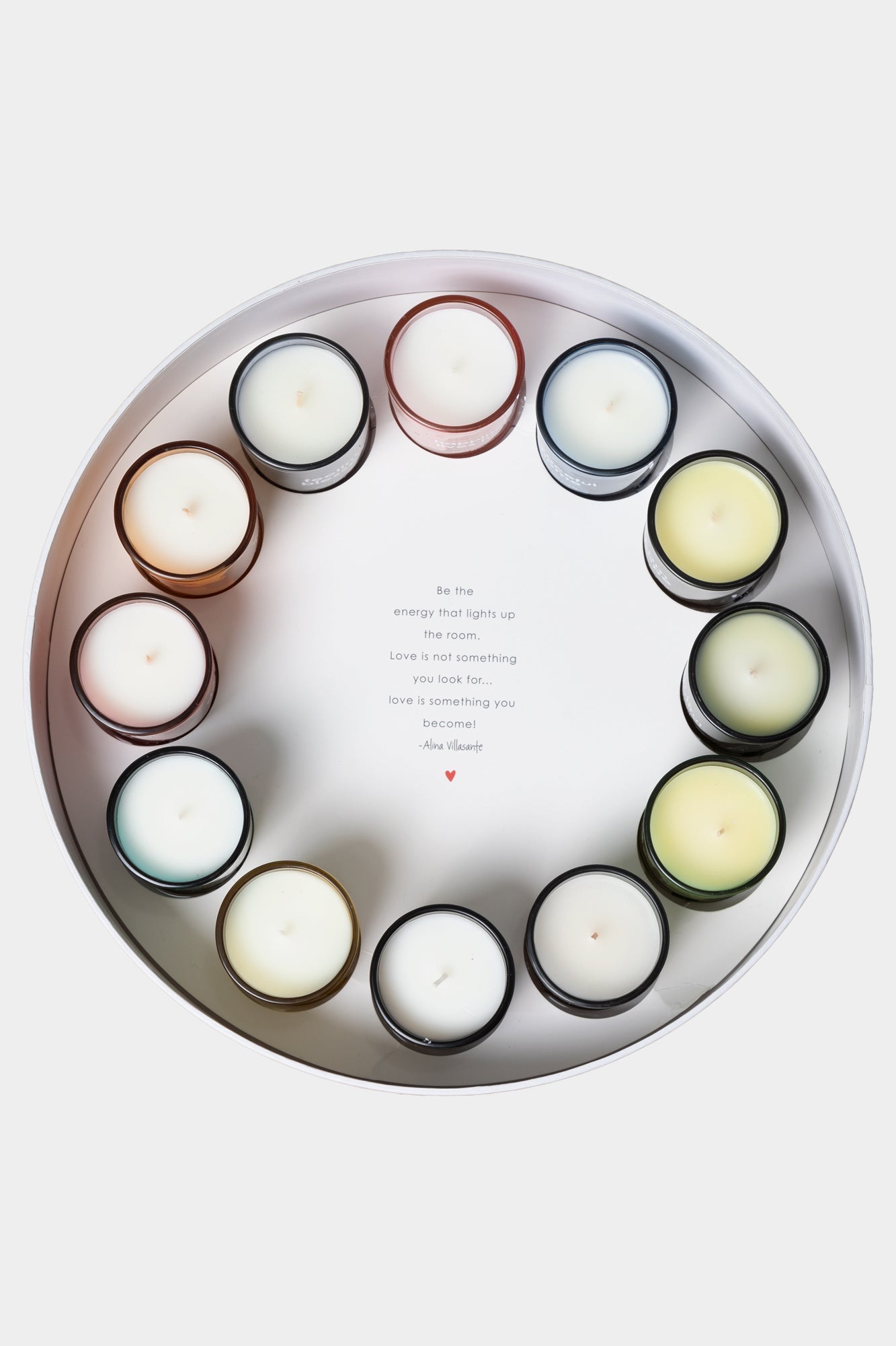 - Includes gift box and 12 1.9-oz candles: one each in Bronze Patchouli, Winterberry, Winter Forest, Bamboo Jasmine, White Lily & Lace, Tuberose Magnolia, Snowy Birch, Winter Wool, Apple Crisp, Vanilla Iced Shortbread, Spicy Teakwood, and Pine Forest