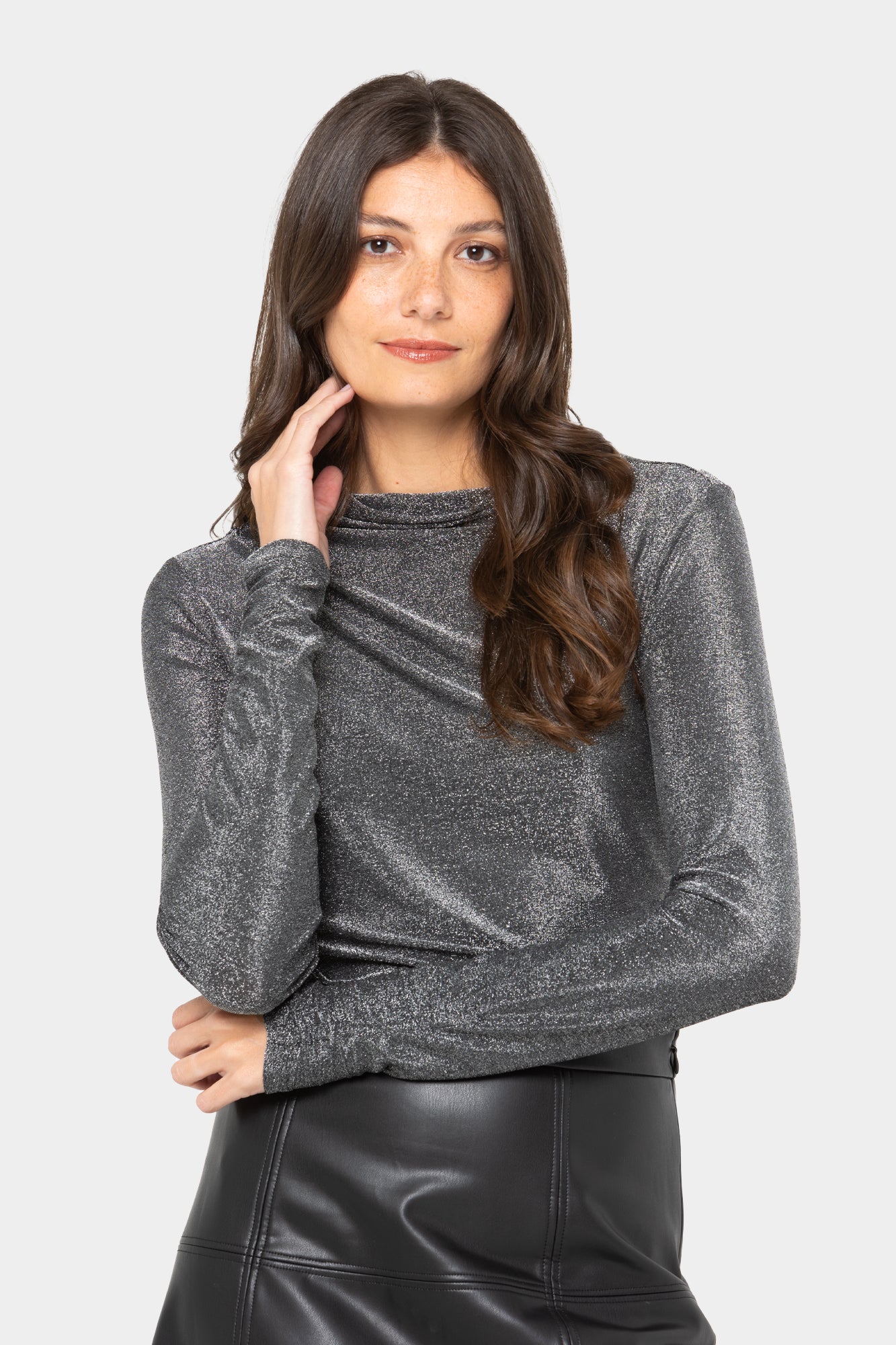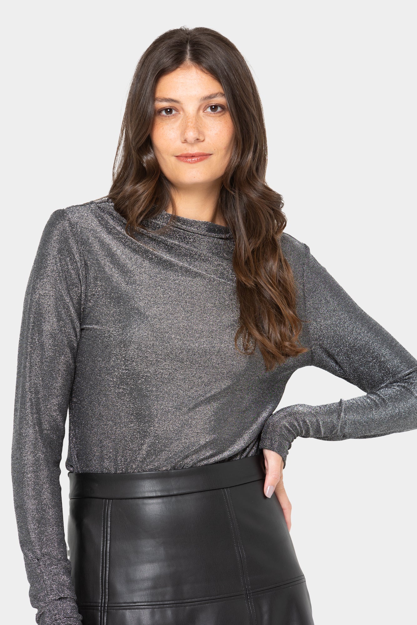 Black Label Lurex Knit Long Sleeve Top