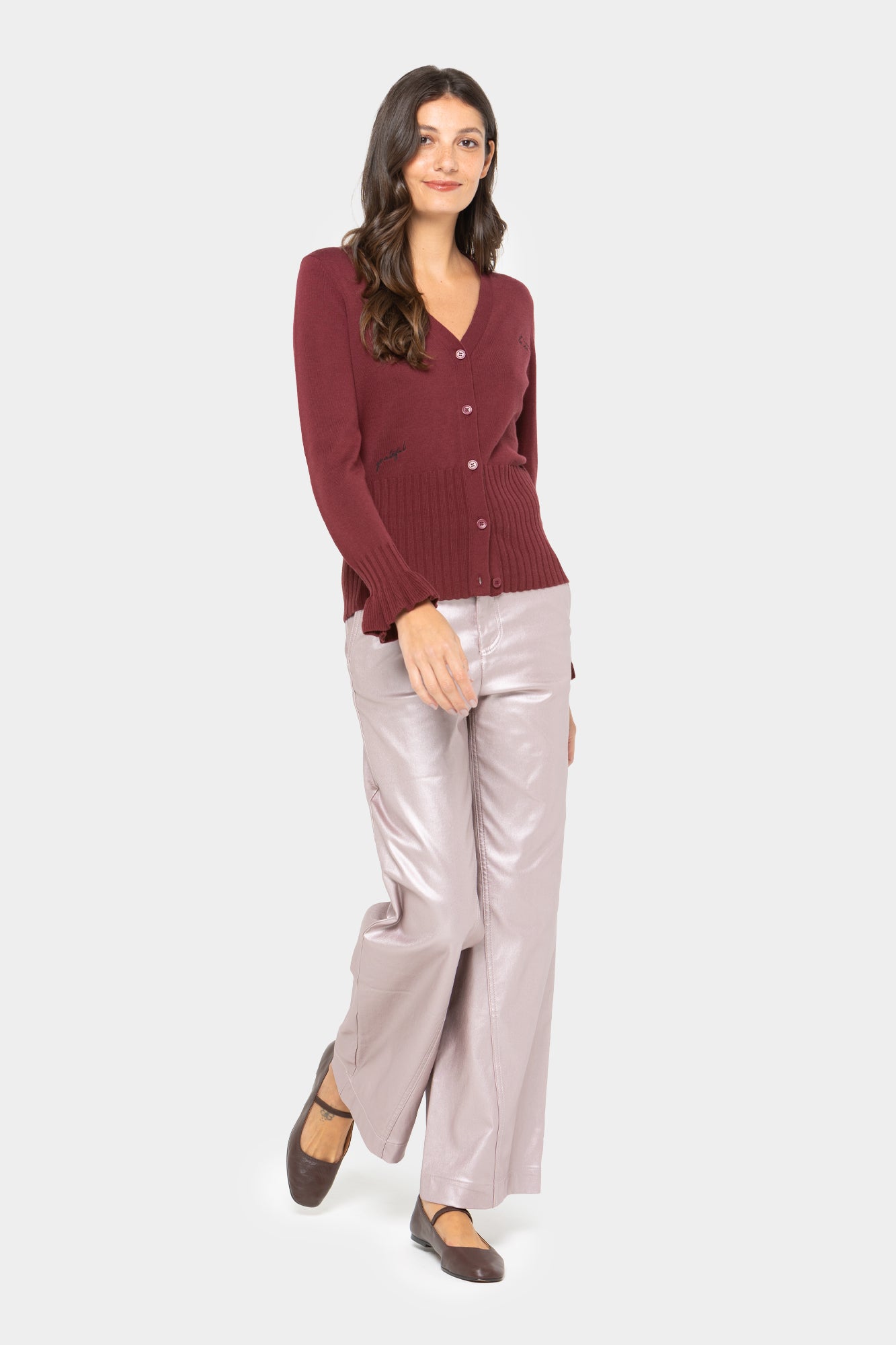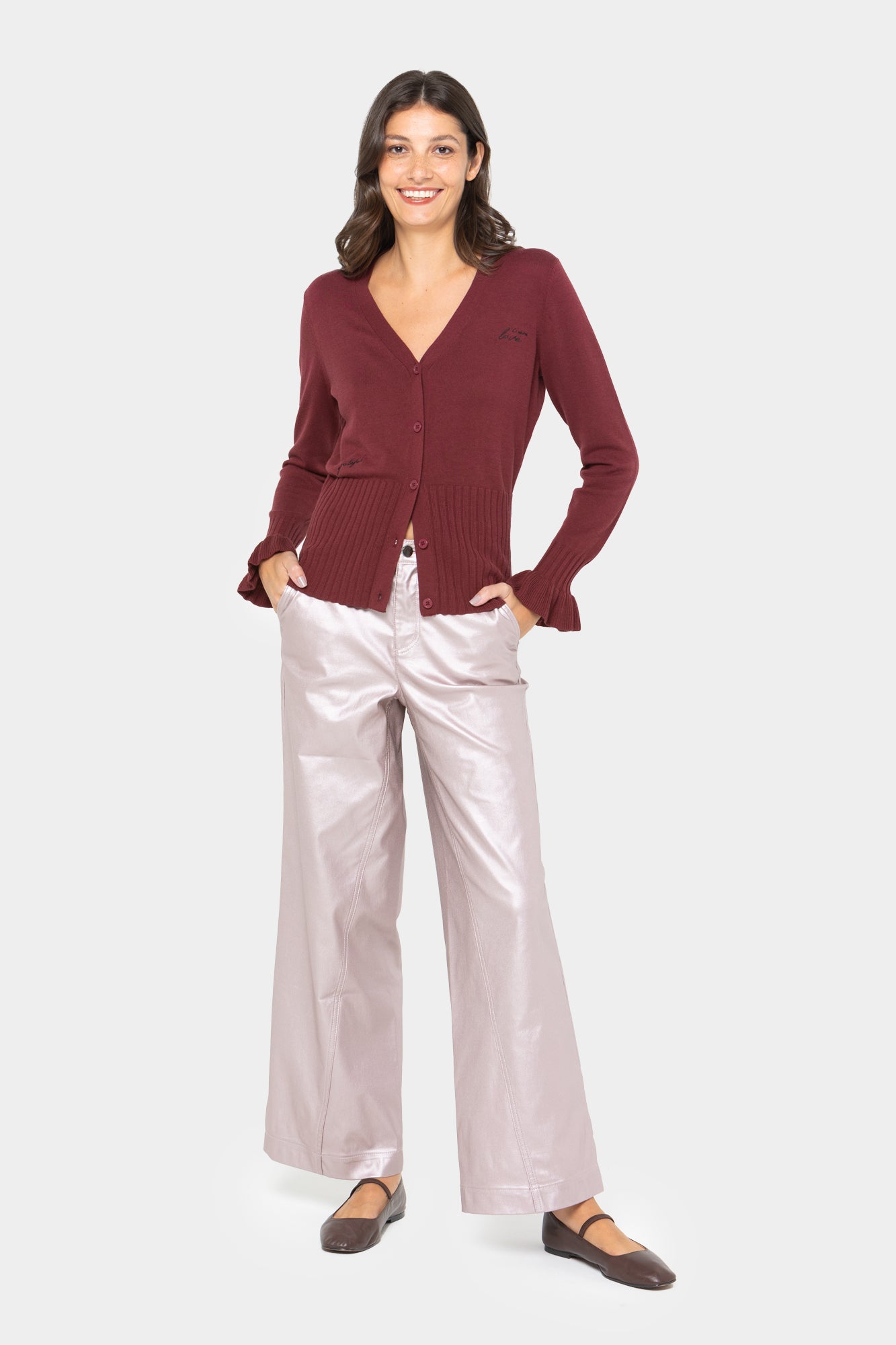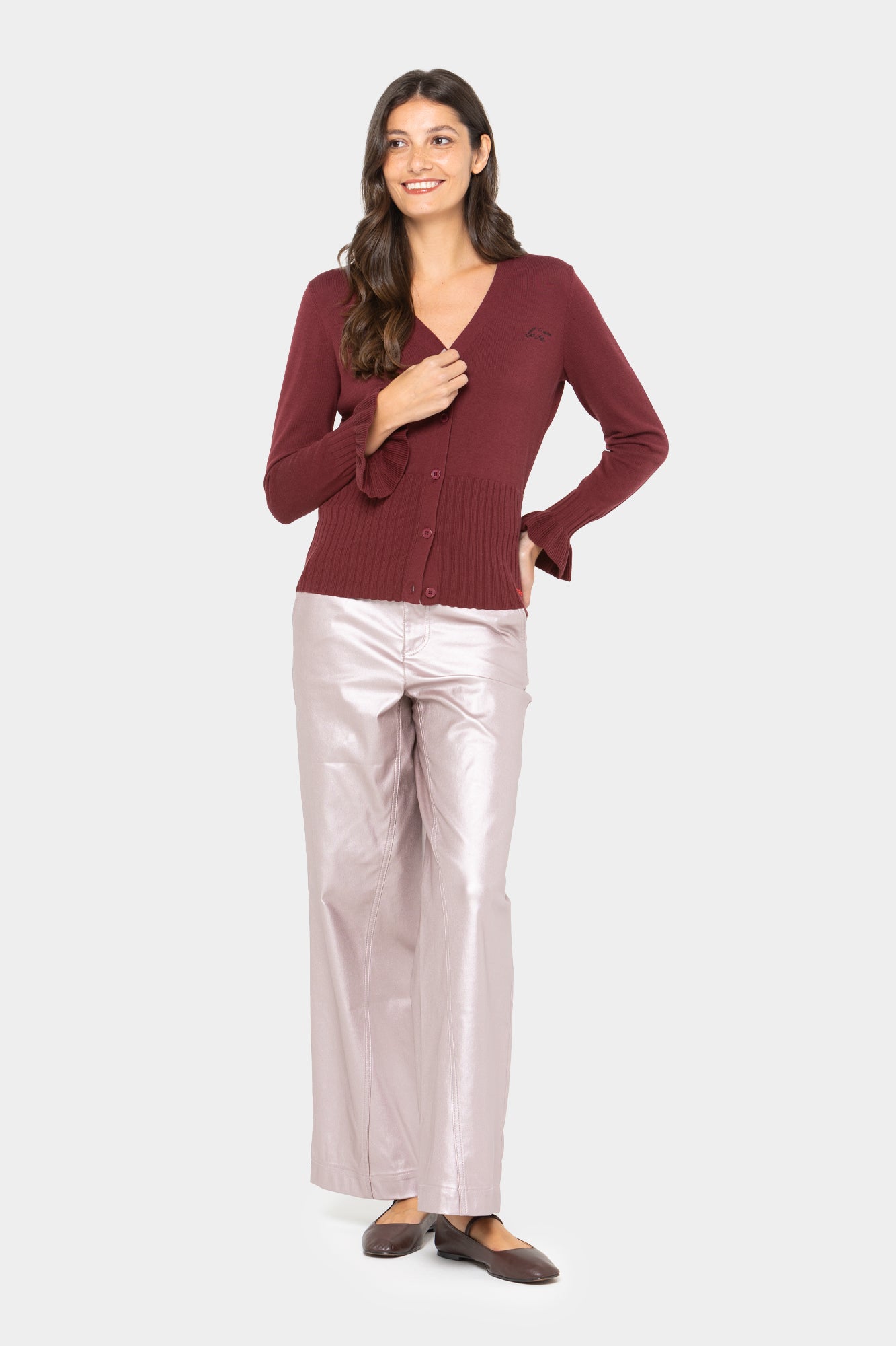- Leg Shape: wide leg; widens fashionably from thigh to leg opening
