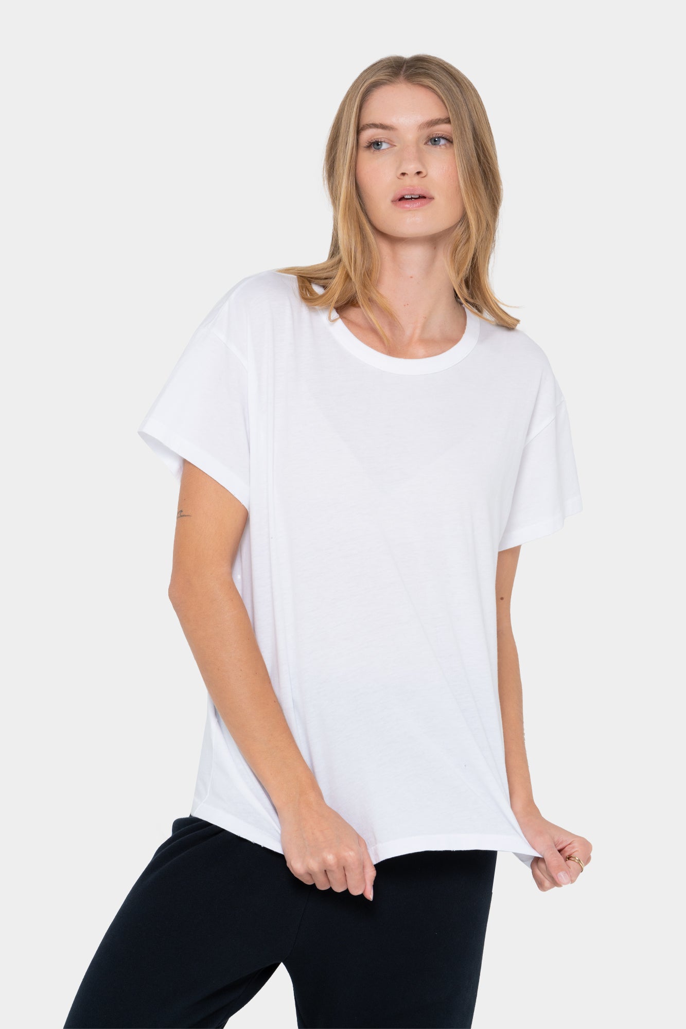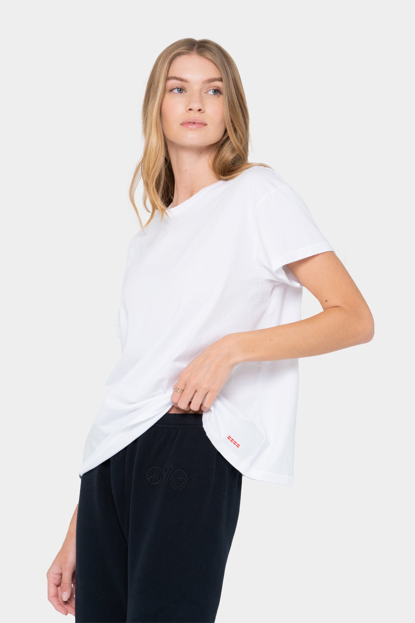 The short sleeve tee features an oversized fit, standard length, and embroidered with our signature red dash marks at the bottom right.