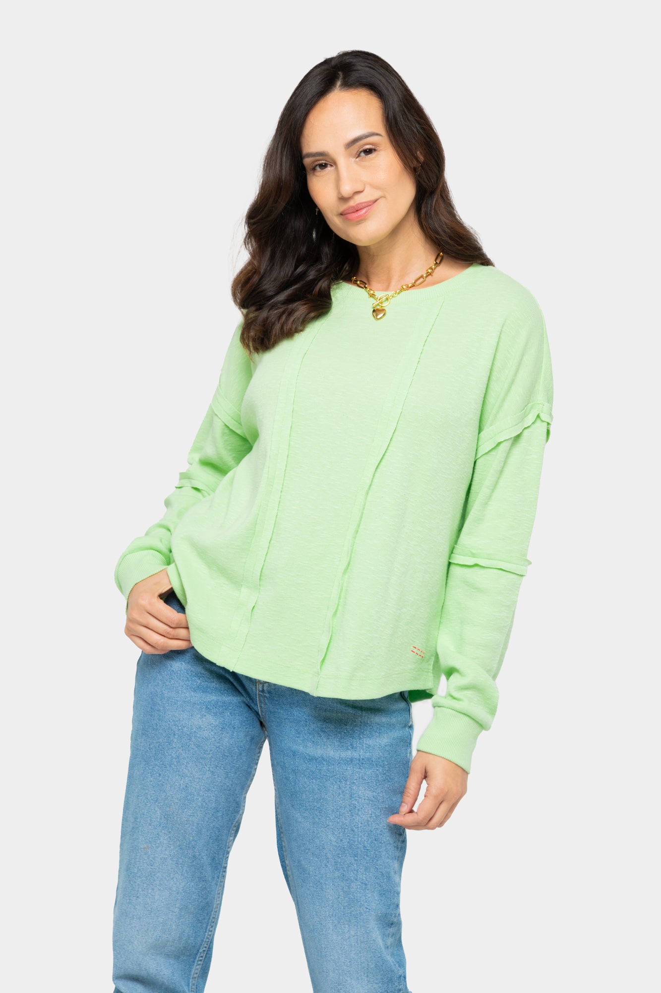 Make fashion fun again with this lightweight long-sleeve top. Raw edge seam details add a playful touch for a look that's cool and carefree.