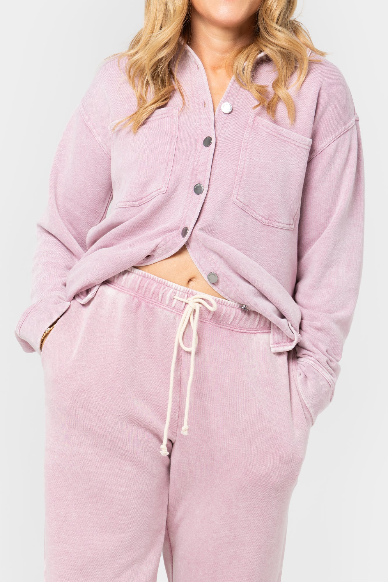 • Features: washed finish, full length, pull-on style, elastic waistband with drawstring, on-seam pockets