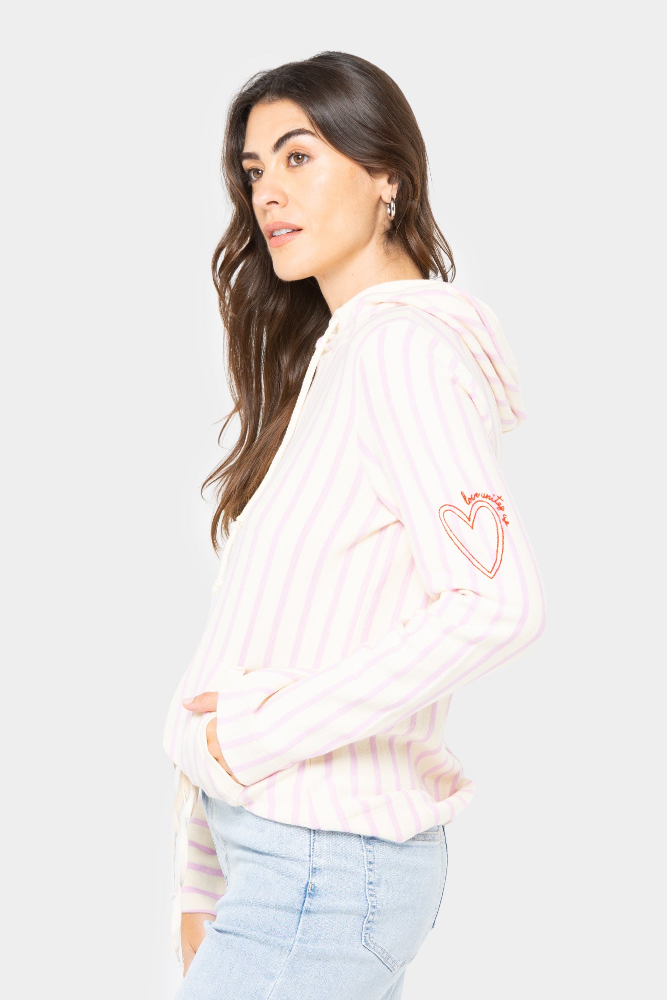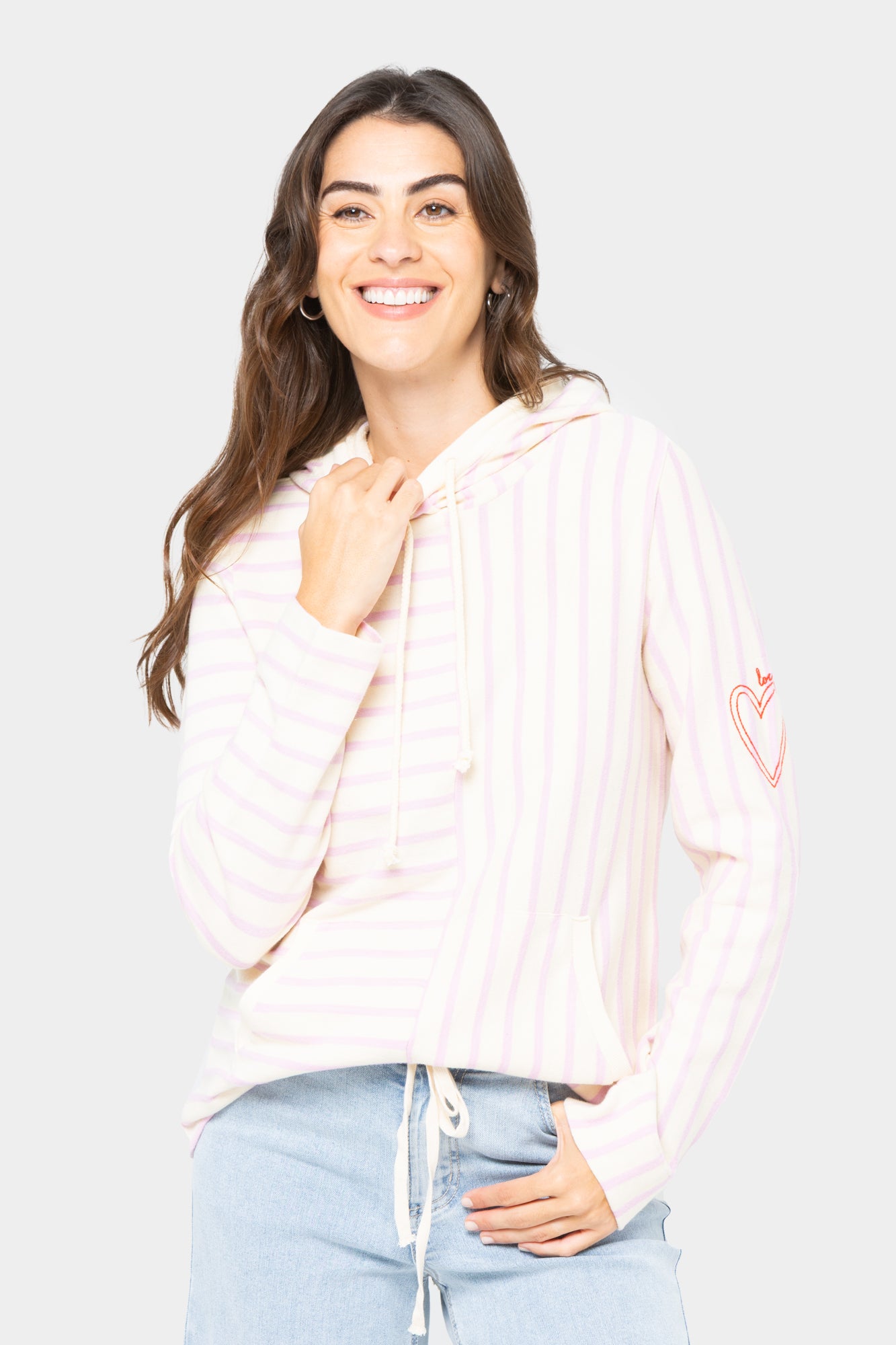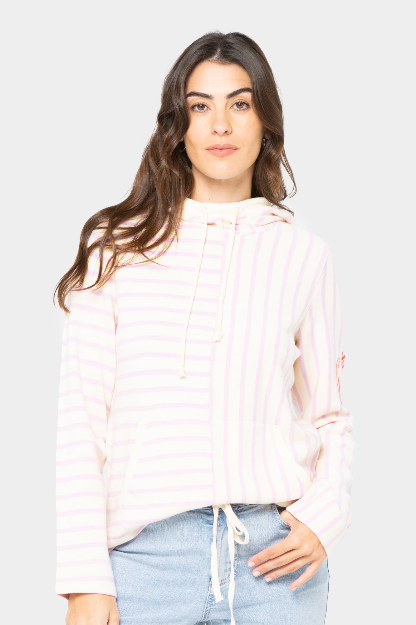 - Features: mixed stripes, hood with rib detail, functional drawcord, kangaroo pocket