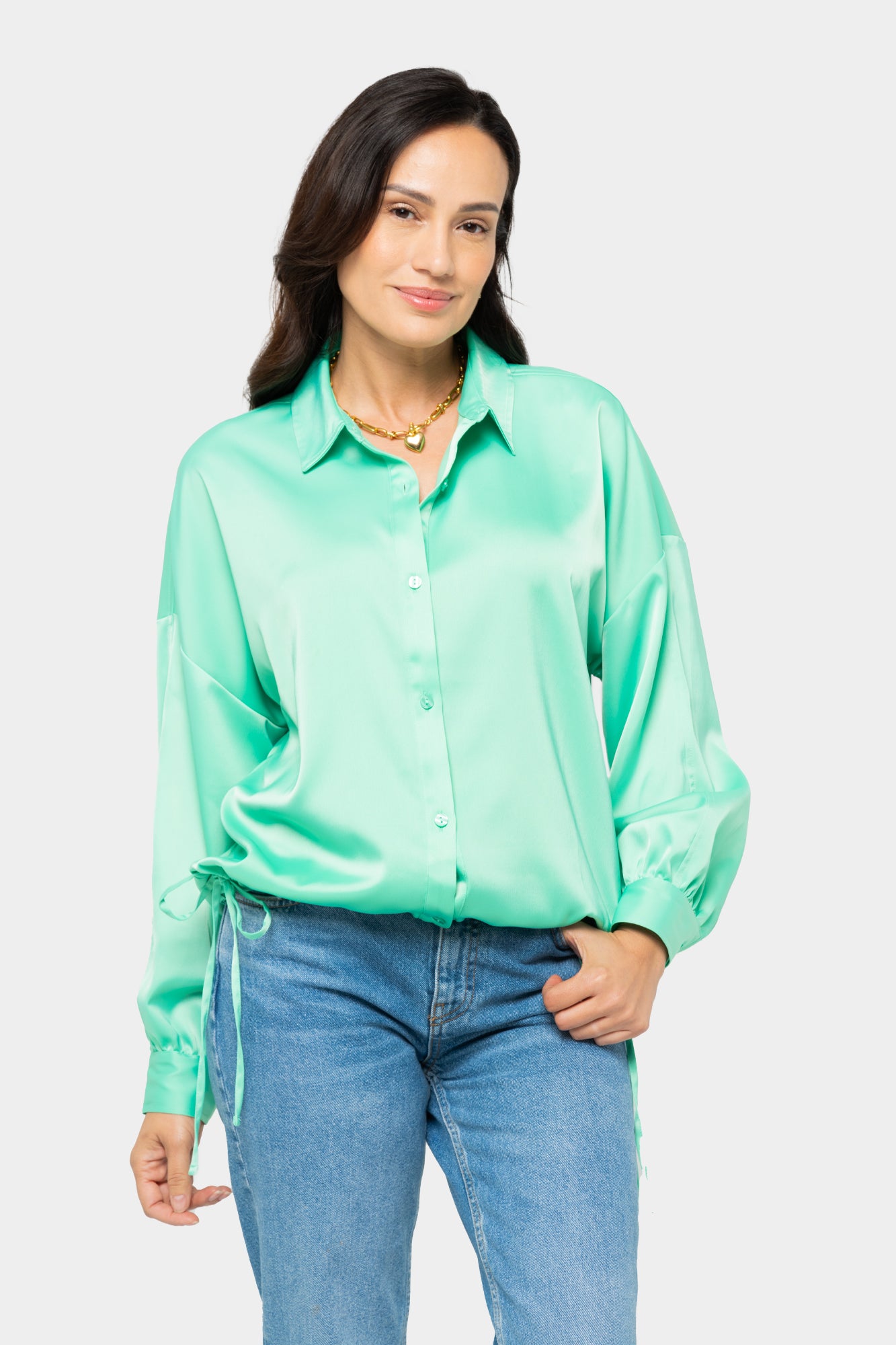 Sleek and chic, this satin shirt makes a bold style statement. Tie it at the hem for a sweet and ladylike finish.