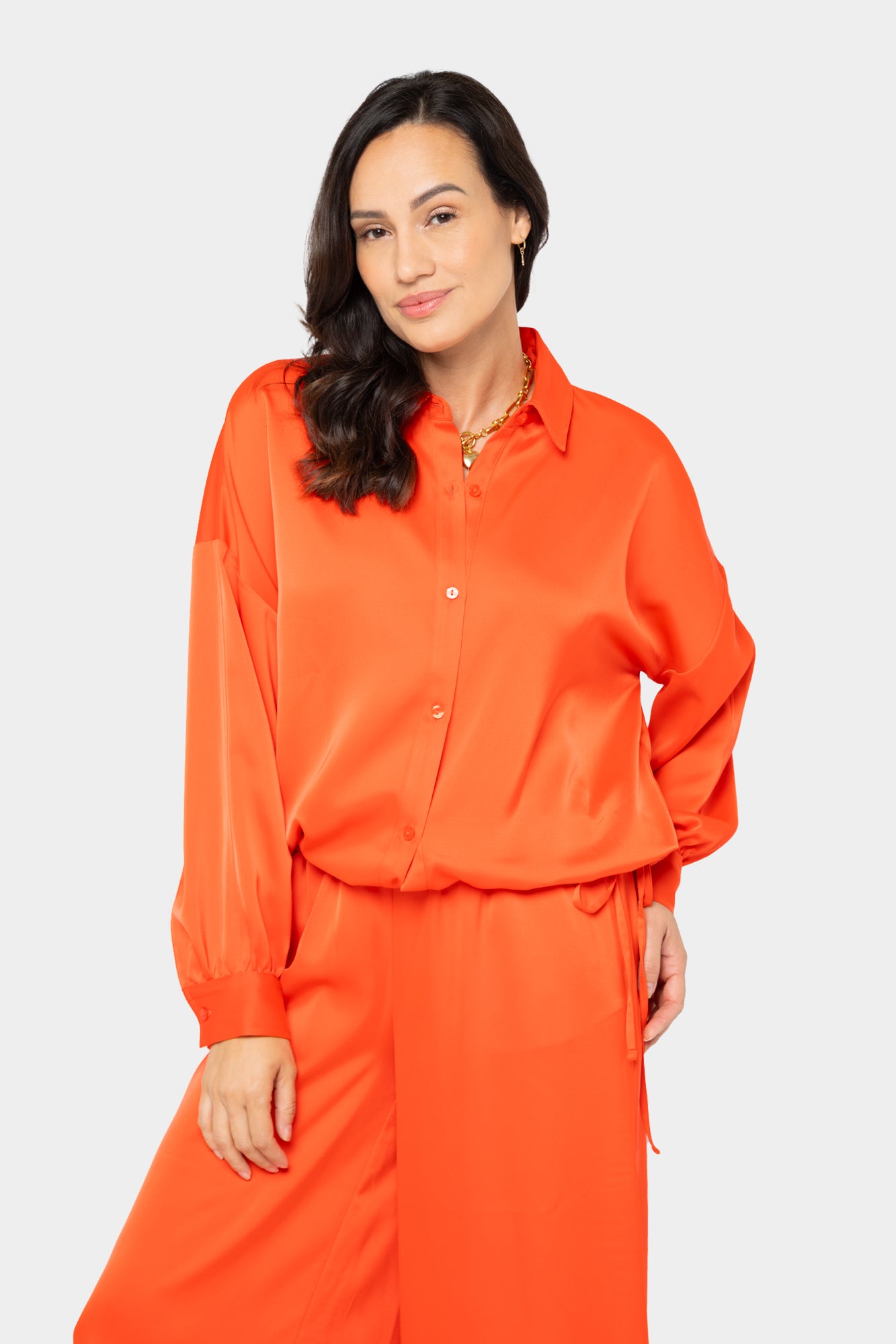 Sleek and chic, this satin shirt makes a bold style statement. Tie it at the hem for a sweet and ladylike finish.