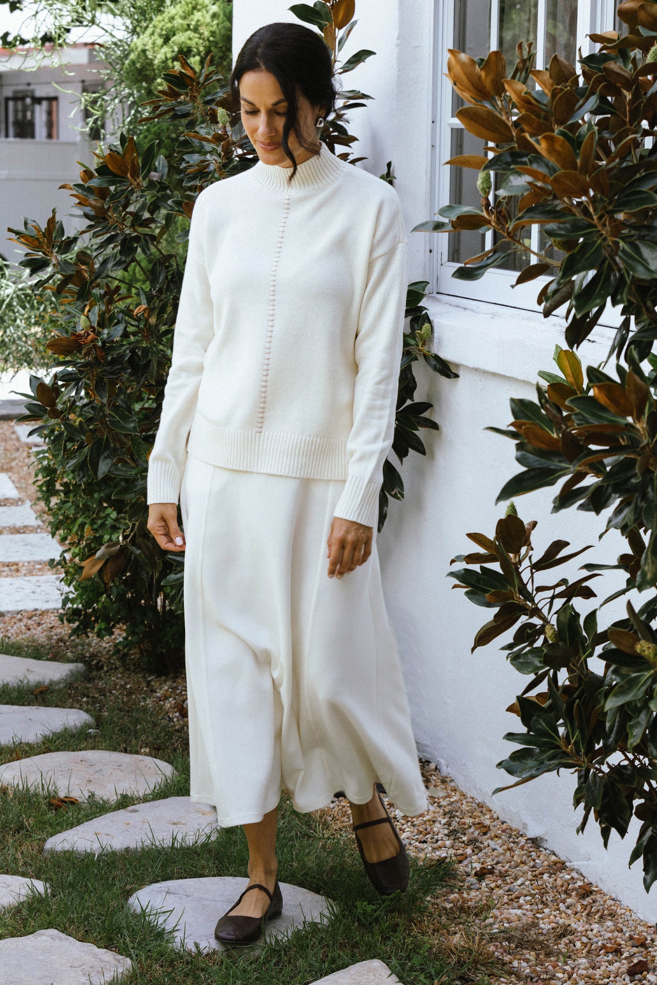 It's sweater season (cue the confetti)! Add a little razzle dazzle to your wardrobe with this mock-neck design. This warm and cozy top has a relaxed fit with drop shoulders for an on-trend, slightly slouchy look. The contrasting stitch detail down the center adds visual interest, making this a top pick for your cool-weather activities.